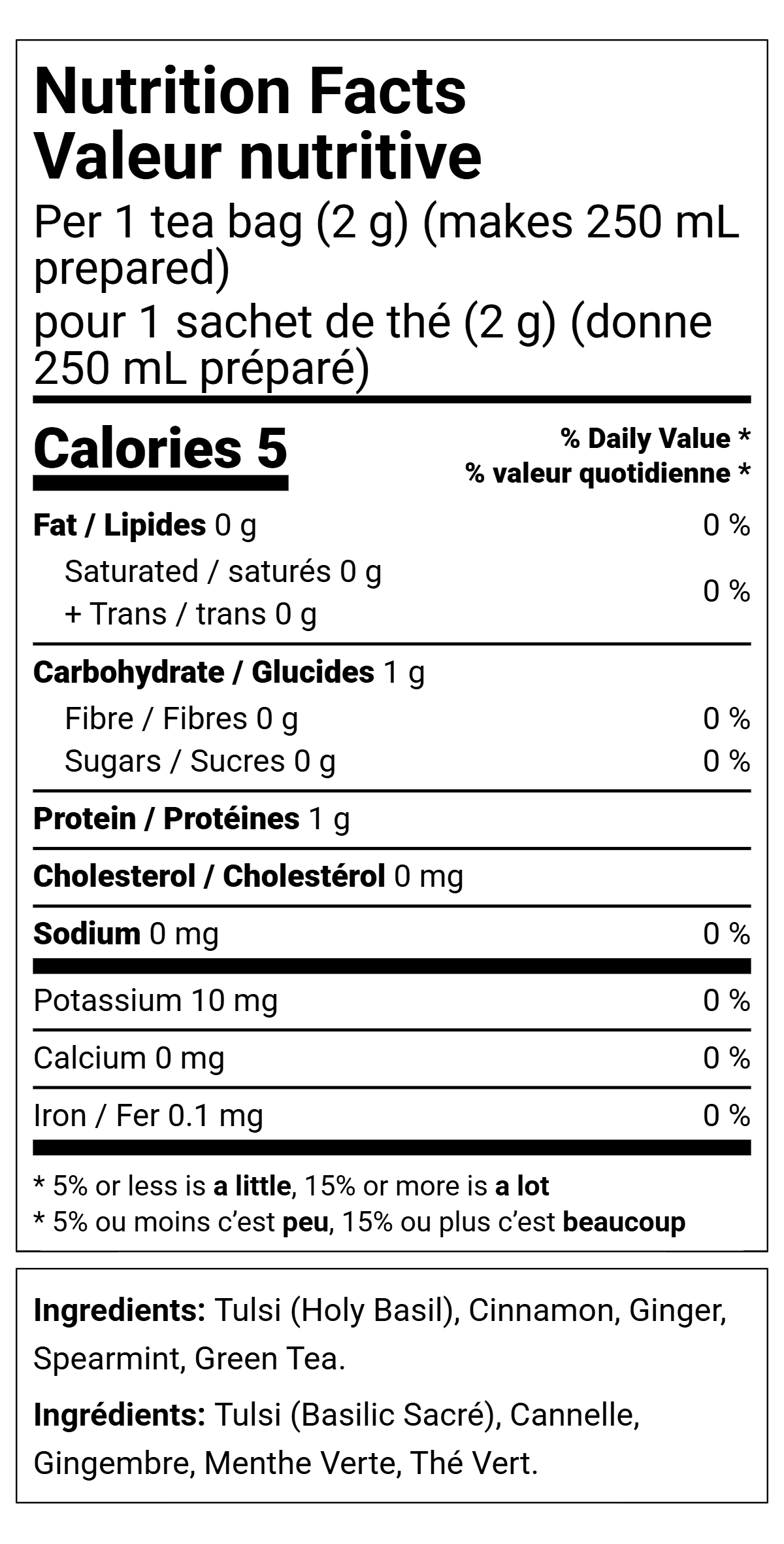 Green Tea, Cinnamon, Basil, Spearmint, Ginger